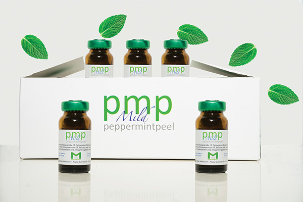 ペパーミントピールとは、ケミカルピーリングの一種で敏感肌でも施術できる「次世代のピーリング」です。5種類のピーリング成分に、3種類の保湿成分、抗しわペプチド、メントールを配合したイタリア発のピーリング製剤であり、肌に浸透させることで、古い角質を除去し、ターンオーバーをサポートする効果があります。ピーリング作用のあるTCA(トリクロロ酢酸)の濃度が他のピーリング剤よりも低いことに加え、メントールを配合していることから、ケミカルピーリング特有の肌の灼熱感を抑えられるのが特徴です。他のピーリングよりも剥離作用がマイルドで、3種類の保湿成分も含まれています。さらに肌の状態に合わせて2種類(マイルド・インテンス)の濃度を使い分けますので、今までピーリングを敬遠していた敏感肌の方にもおすすめできます。清涼感と高い美肌効果の得られるピーリング施術です。
